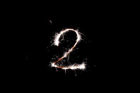 burning sparkler stick and writing sparkling text . number zero isolated on black background