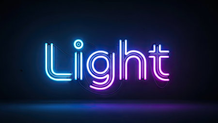 The english love digital neon lights are on the dark background