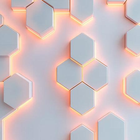 Abstract geometric pattern with glowing hexagons.