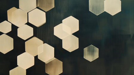 Explore a captivating abstract image featuring hexagonal patterns with a subtle glow. The textured surface adds depth and intrigue, perfect for various design projects.