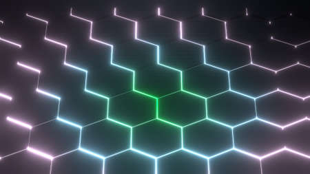 Abstract 3d rendering of hexagon background. Futuristic hexagon shape with glowing lights.