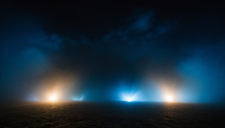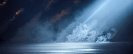 AI Generated. Abstract Night Sky with Blue Light and Fog
