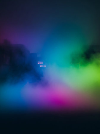 Dramatic lighting effect with fog and vivid color gradients