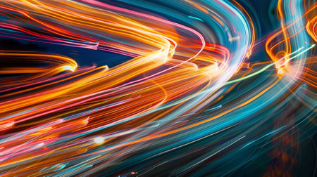 Captivating abstract image featuring vibrant light trails that create dynamic patterns and swirling colors, perfect for artistic projects and modern design elements.