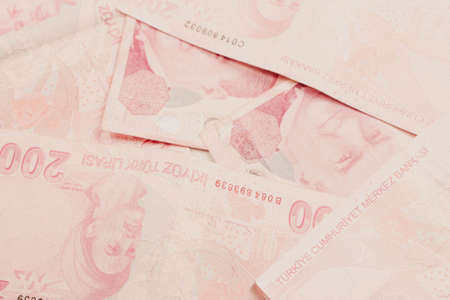A bunch of banknotes with a face value of two hundred hryvnias. Ukrainian money.