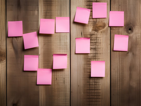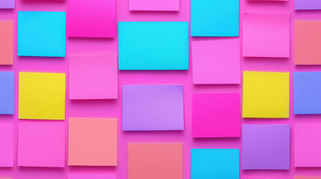 A vibrant arrangement of colorful sticky notes in blue and pink on a bright background, perfect for concepts of creativity, organization, and planning.