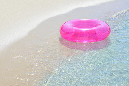Close Up of a pink inflatable swimming ring on the beach