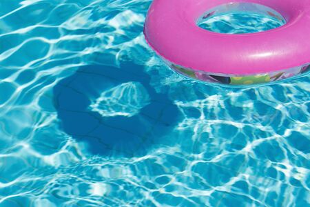 Swimming ring floating on the water in the pool. The concept of summer holidays