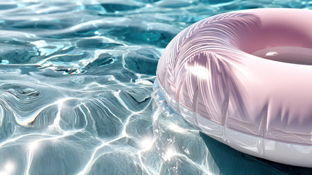 Close up of a blush inflatable ring floating on pool water. Colorful Summer Wallpapers