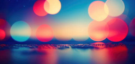 Captivating image showcasing a tranquil water surface illuminated by colorful lights, creating a mesmerizing bokeh effect with gentle ripples.