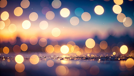 The scene features a soft blur of warm golden lights, creating an enchanting atmosphere perfect for evening gatherings or celebrations.
