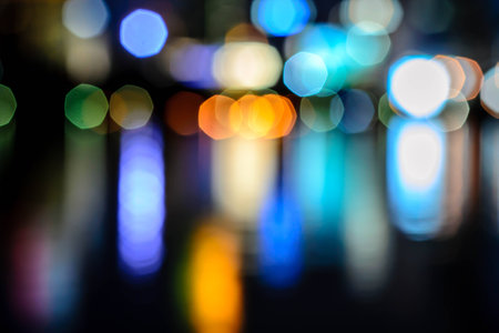 de focused bokeh light, abstract background at night photo