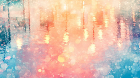 A dreamy, colorful abstract image depicting reflections on a water surface. Soft bokeh and vibrant colors create a serene atmosphere, perfect for artistic projects.