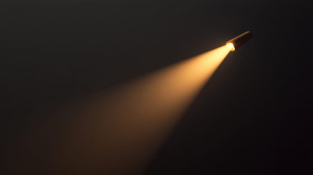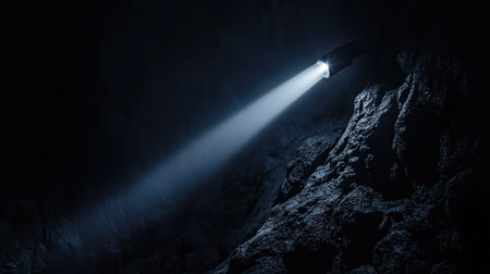 A bright beam of light emerges from a flashlight, creating a striking contrast against a dark backdrop. This image evokes a sense of intrigue and adventure.