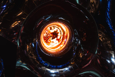 Vivid abstract representation of fire with empty center space for creative display