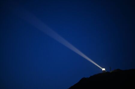 Beam of blue light on black . Applied to a searchlight torch.