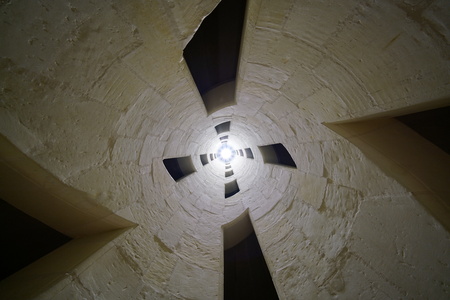 View from inside vertical tube downcast shaft with ladder