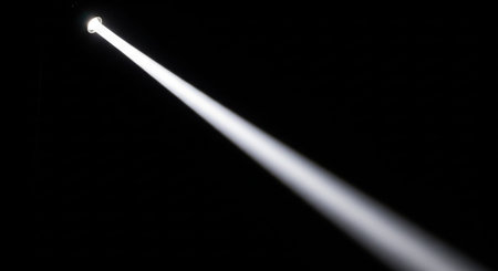 Strong directional spotlights highlighting a single object in an otherwise dark environment.