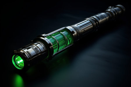 Green lightsaber. Futuristic glowing fight sword equipment. Generate ai