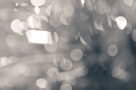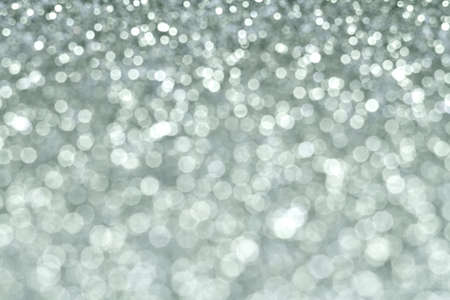 Silver lights bokeh defocus abstract background. Silver Festive Christmas. Glitter twinkled bright background.