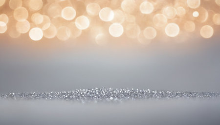 Abstract silver bokeh background with sparkling lights and glittery texture, ideal for chic and festive designs