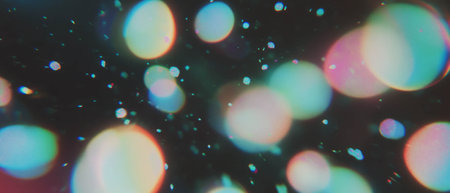 Blur colorful rainbow crystal light leaks on black background, defocused multicolored retro film lens flare bokeh, vintage prism colors,