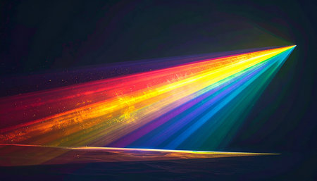 Full spectrum of light refracting on a dark surface, showcasing seamless transition from red to violet