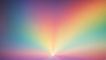 A soft focus abstract background with a rainbow gradient and subtle light streaks, creating a dreamy, hazy horizon effect.