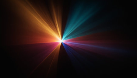 abstract background with rays of light and lens flare, multicolor