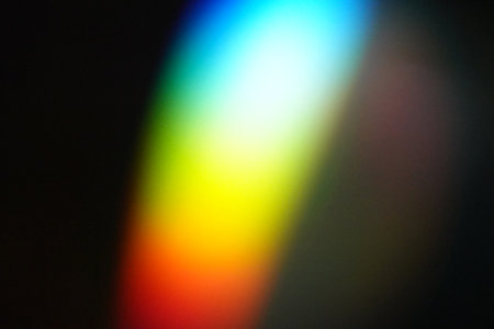 Light spectrum reflections creates colorful lines on dark surface, showcasing the beauty of refracted light in spectrum of rainbow colors.