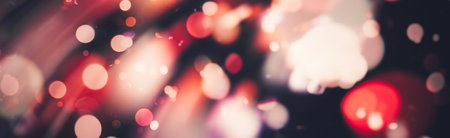 Abstract blur bokeh background. Silver white, red bokeh light on defocused black background