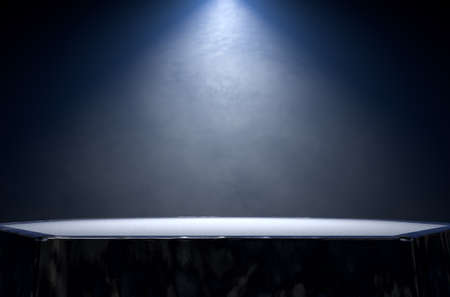 Abstract dark concentrate floor scene with mist or fog, spotlight and display