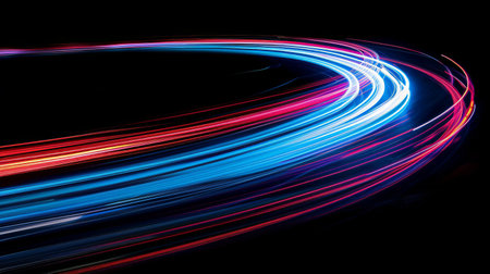 This vibrant image features colorful light trails in motion against a dark background, perfect for themes of technology, innovation, and energy.