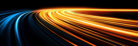 Dynamic Light Trails Flowing Rapidly in a Modern Abstract Background with Bright Curved Lines