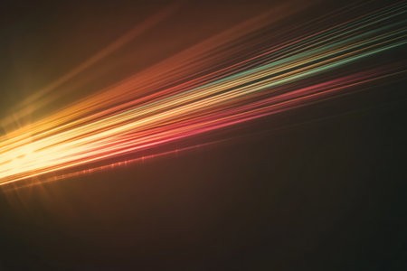 Vibrant diagonal neon lights on black background.