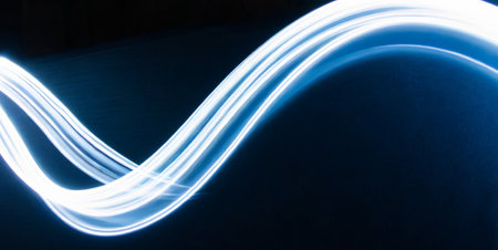 Dynamic motion blur of light trails resembling lightning on a dark background