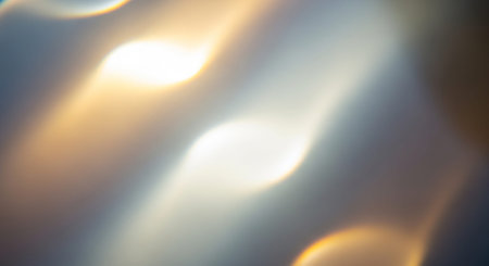 Captivating image of warm glow reflections on a polished surface, featuring soft bokeh lights that provide a calming ambiance for interior design or relaxation settings.