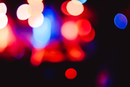 City night light blurred bokeh. Yellow and red light circles