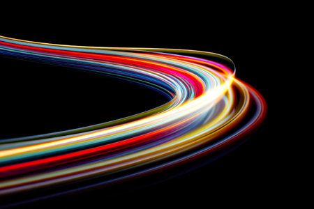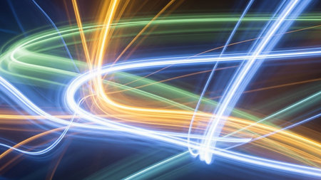 Colorful light trails in motion, vibrant neon streaks creating an energetic and dynamic abstract background