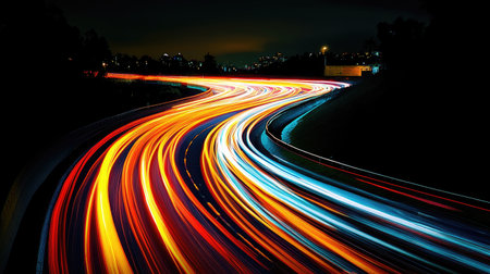 Vibrant Streaks of Colorful Lights Create an Abstract Pattern Capturing City Traffic at Night