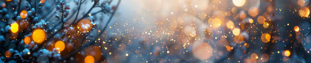 Enchanting winter wonderland with falling snowflakes and twinkling lights for holiday designs