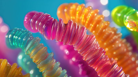Colorful jelly worms close up background. AI generated illustration