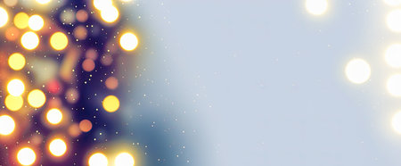 Christmas lights. Bokeh. Xmas. Festive New Year blurred silver gray, yellow and black background. Banner. Beautiful sparkling backdrop, texture. Copy space. Place for text. Template.