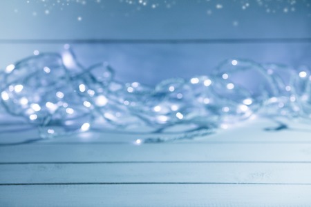 Abstract Blue Christmas lights bokeh background. Defocused.