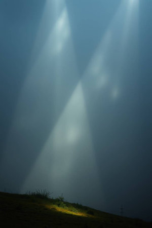 light of the sun In the evening shining through the clouds Down as a beam of light.