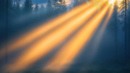 A captivating display of warm golden light rays that create a tranquil and dreamy atmosphere, perfect for various creative projects.