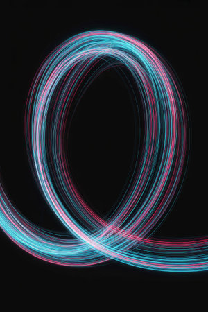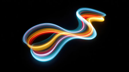 this abstract image features colorful neon light trails against a dark backdrop, creating a modern look