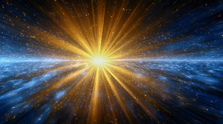 Golden light rays expanding through dark space