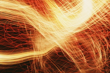 Fire trails create smooth light patterns on a dark background with a long exposure effect