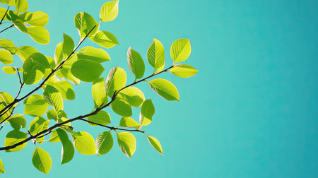 Explore the beauty of nature with this image featuring fresh green leaves on a branch set against a soft turquoise background, perfect for various projects.